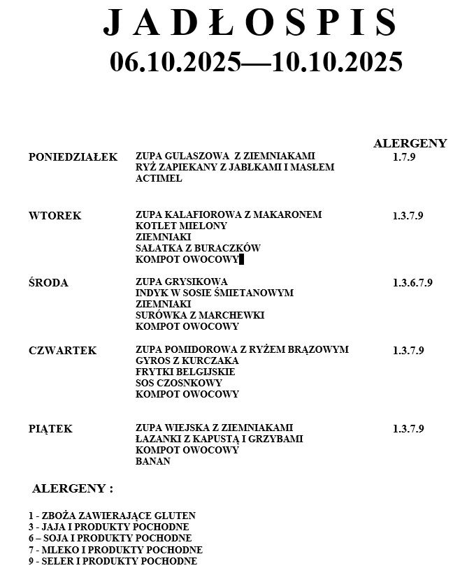 Jadłospis 6-10 październik 2025