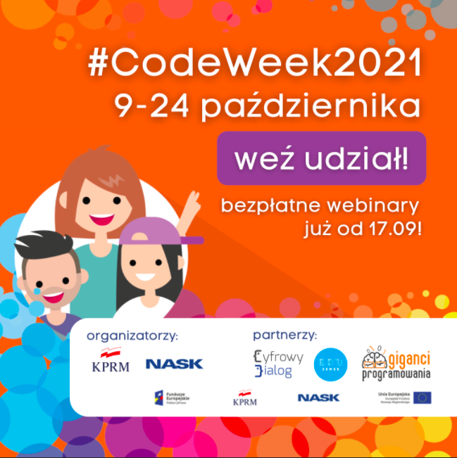 W dniach 9-24 października br. odbędzie się kolejna edycja Europejskiego Tygodnia Kodowania (Code Week 2021), w ramach którego europejskie państwa rywalizują w liczbie zorganizowanych wydarzeń związanych z programowaniem.
